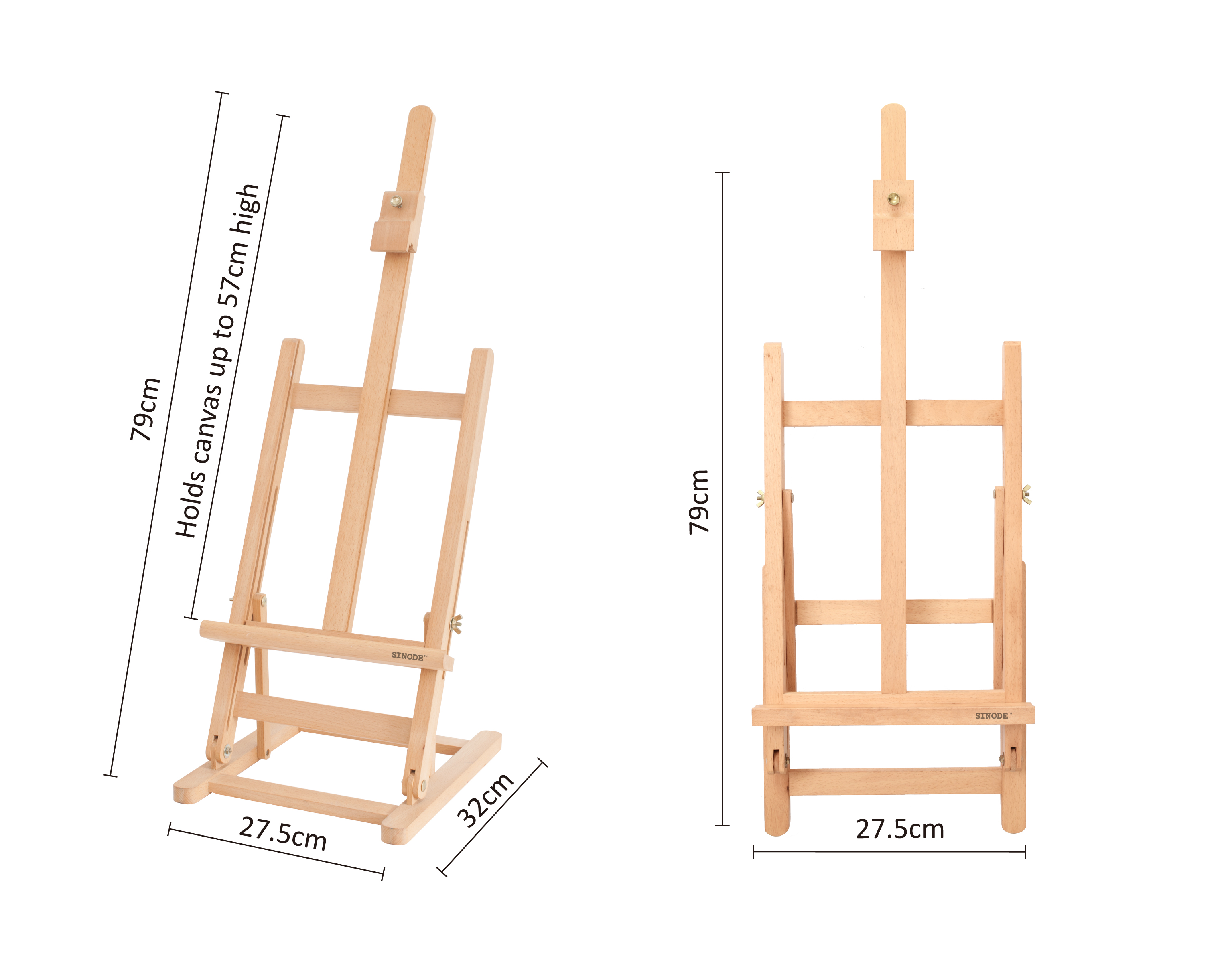 Small table easel. Adjustable in height for canvas up to 26cm high. The fixed angel position is ideal either for table painting or display. Made of oiled beech wood.